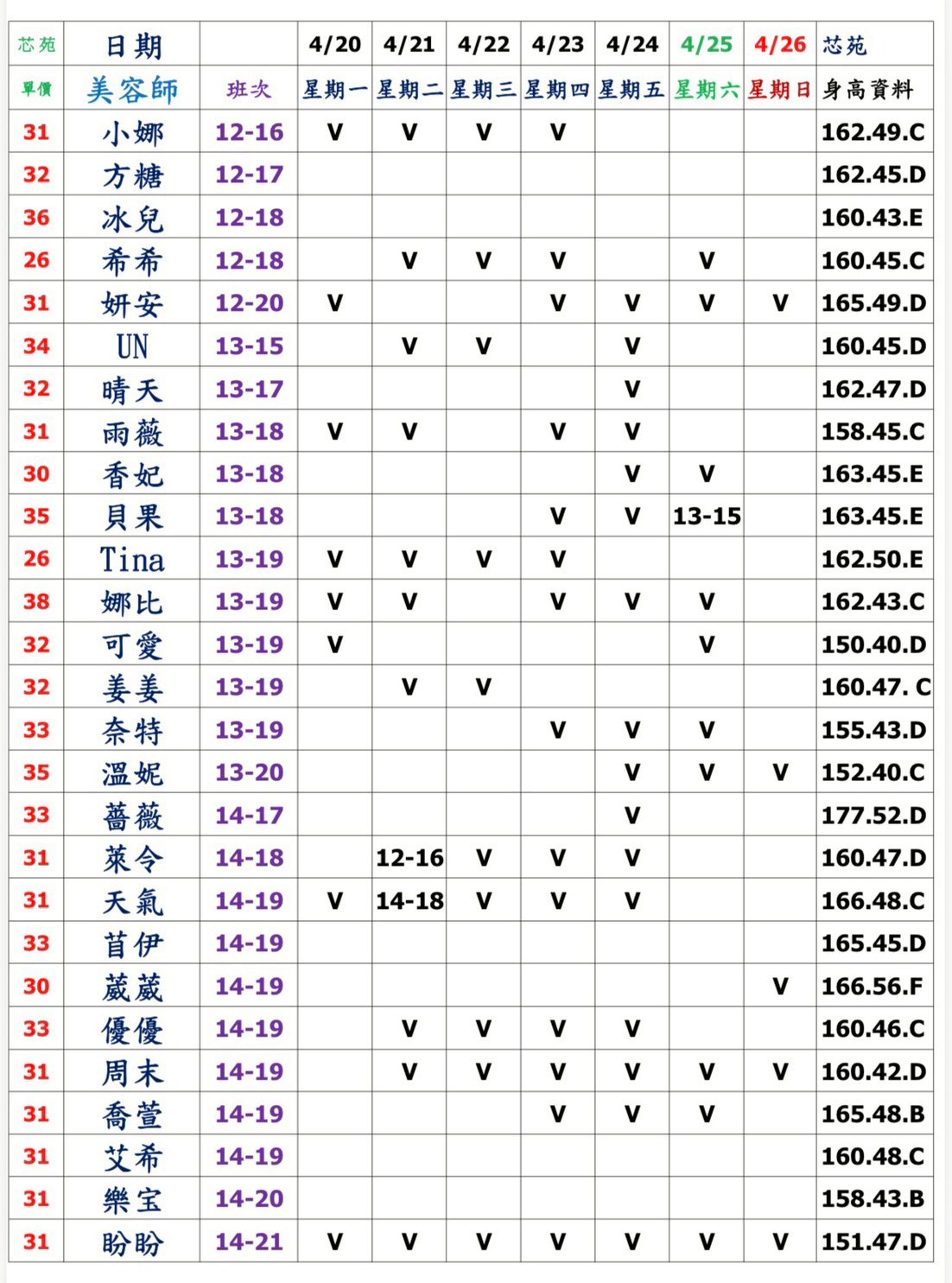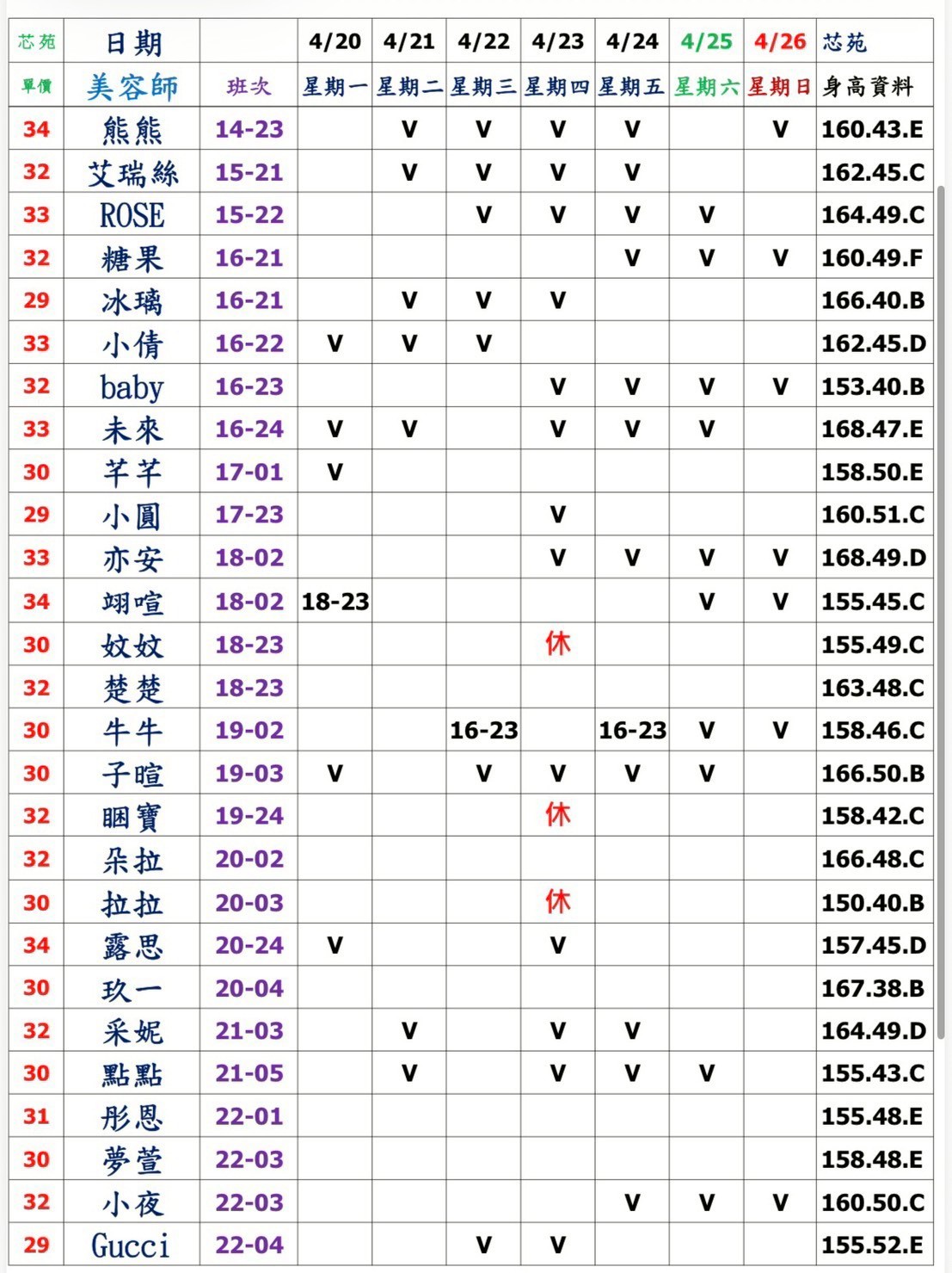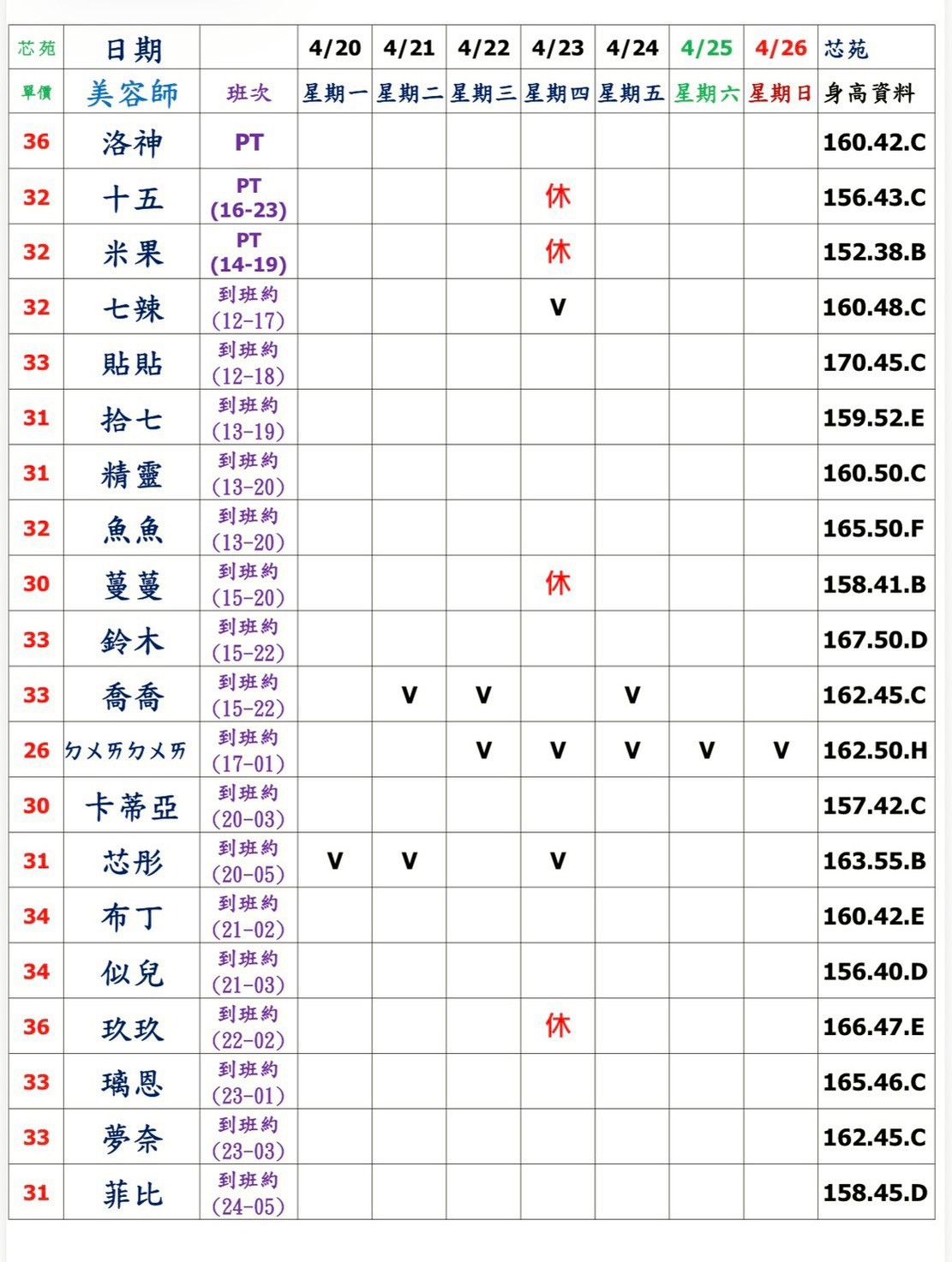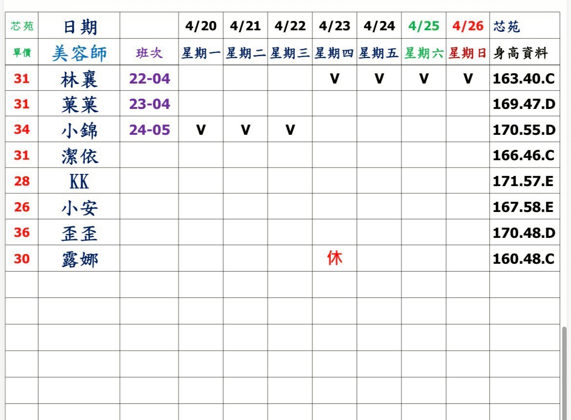 預約須知: ①手機包包要鎖置物櫃 ②小艾團隊全年無休,每日早上10:00至隔天早上7:00都可以 為您服務&預約 ③消費方式: 本館需加收100NT包廂費 基本消費2900起 部分紅牌3000起 ④班表上的末班並非下班 歡迎加我詢問: 點我點我 小愛/小艾 團隊精選 --請點擊我 為您規劃路線--請點擊我 附近停車場 -- 欣欣百貨停車場 台灣聯通停車場-華泰王子場 ❤❤❤❤❤❤❤❤❤❤ 其他館別班表連結: 林森班表 愛寶班表 錦州班表 大都會班表 芯苑班表 永利館班表 雙城館班表 樂鑽班表 長春班表 夏葳夷班表